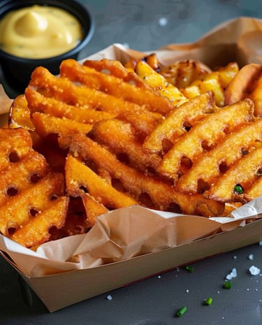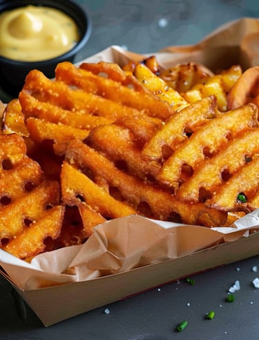 Les Grilled Cheese sont l'équivalent français du croque monsieur, mais sans béchamel. Nous avons dévidé de les revisiter pour un un maximum de plaisir. En accompagnement, nos waffle fries cuites au airfryer (sans huile) sont vraiment délicieuses, vous permettant de vous régaler sans culpabilité. Découvrez une nouvelle expérience de street food.